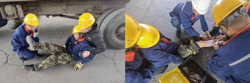 機(jī)械傷害是安全生產(chǎn)人身傷亡事故中最常見的事故類型,組織職工開展應(yīng)急演練,是避免和減少此類事故發(fā)生的重要途徑。為確保此次演練取得預(yù)期效果,配送公司裝卸作業(yè)部提前制定方案,成立安全小組,明確職責(zé)分工,并組織參演人員進(jìn)行演練前培訓(xùn),細(xì)化各環(huán)節(jié)步驟。此次演練模擬作業(yè)人員在庫(kù)區(qū)作業(yè)吊裝貨物時(shí),因自身麻痹大意導(dǎo)致被貨物撞擊致傷,造成機(jī)械傷害的場(chǎng)景。在警戒組、應(yīng)急救援組、檢查組、后勤保障組等各參演人員的密切協(xié)作下,圓滿完成了此次演練任務(wù)。