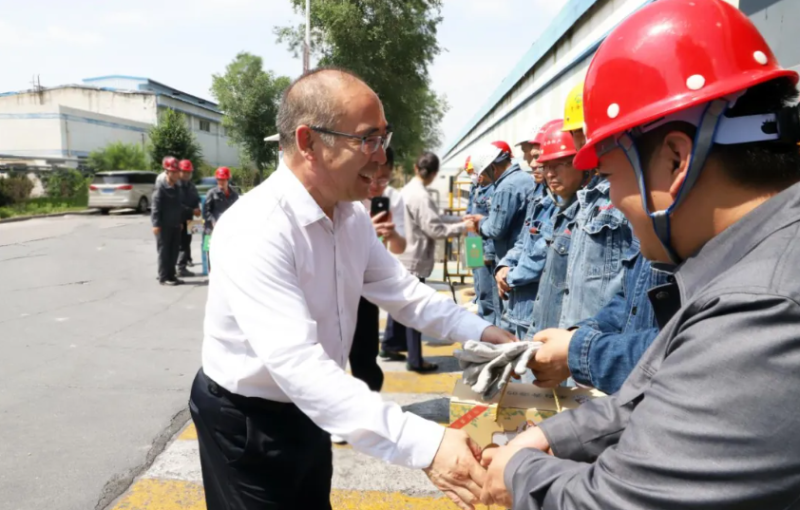 慰問現(xiàn)場(chǎng),吳有禎與生產(chǎn)一線職工親切交流,詳細(xì)詢問大家的工作環(huán)境、勞動(dòng)保護(hù)措施及防暑降溫落實(shí)情況,對(duì)職工們?cè)诟邷靥鞖庀聢?jiān)守崗位、辛勤付出的精神表示衷心感謝。他指出,炎炎夏日里,廣大干部職工搶抓生產(chǎn)黃金期,不懼酷暑,揮灑汗水,用實(shí)干實(shí)績(jī)?yōu)楝F(xiàn)代化新青海建設(shè)作出了貢獻(xiàn)。隨后,吳有禎一行將防暑降溫用品送到職工手中,同時(shí)叮囑公司負(fù)責(zé)人,要高度重視高溫天氣下的安全生產(chǎn)和職工勞動(dòng)保護(hù)工作,合理調(diào)整作業(yè)時(shí)間,改善勞動(dòng)條件,確保職工身體健康和生產(chǎn)安全。